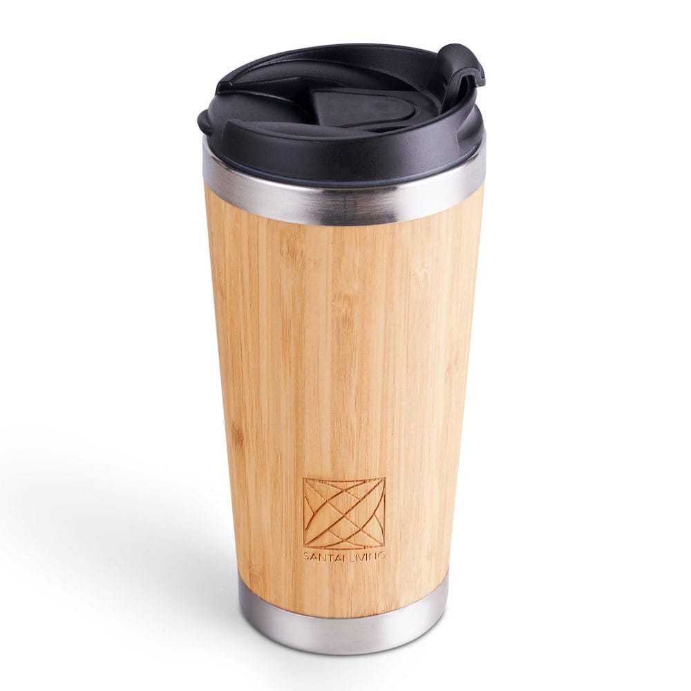 Внутренняя часть термокружки выполнена из пищевой нержавеющей стали (304) пробы. Внешняя часть термокружки и ручки выполнена из натурального бамбука. Благодаря этому, текстура каждого термоса уникальна. В комплекте имеется крышка, предотвращающая проливание напитка в автомобиле и во время ходьбы.